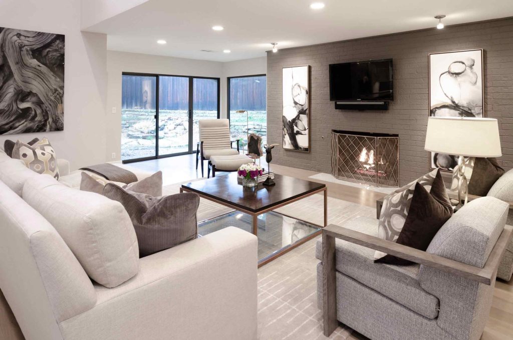 Alternatively, keep things tonal with various shades of grey, silver, or cream for a soft, calming effect. Add a statement rug, a tall floor lamp, and a coffee table with metallic finishes to tie everything together into a cohesive modern look.