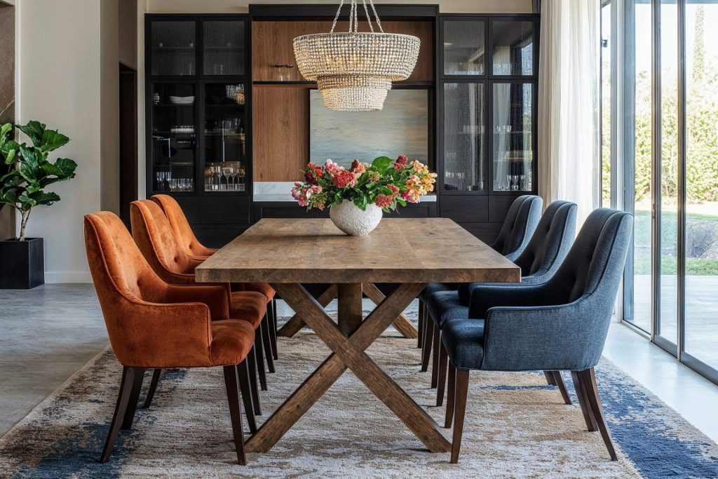 Upholstered chairs add comfort and elegance, while sleek leather options offer a more contemporary vibe. Mix-and-match seating is also gaining popularity for a creative look.